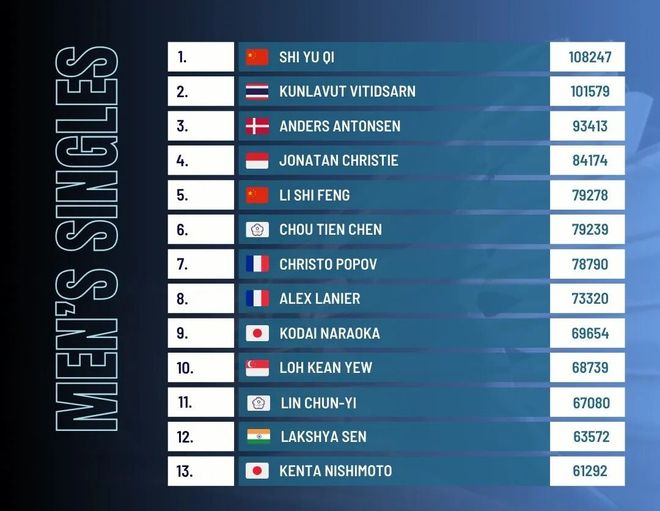 男单整体排名呈现出“头稳,中后混乱”的格局。世界前13名选手排名一动不动,国羽一哥石宇奇稳守世界第一宝座,表现出强大的统治力。